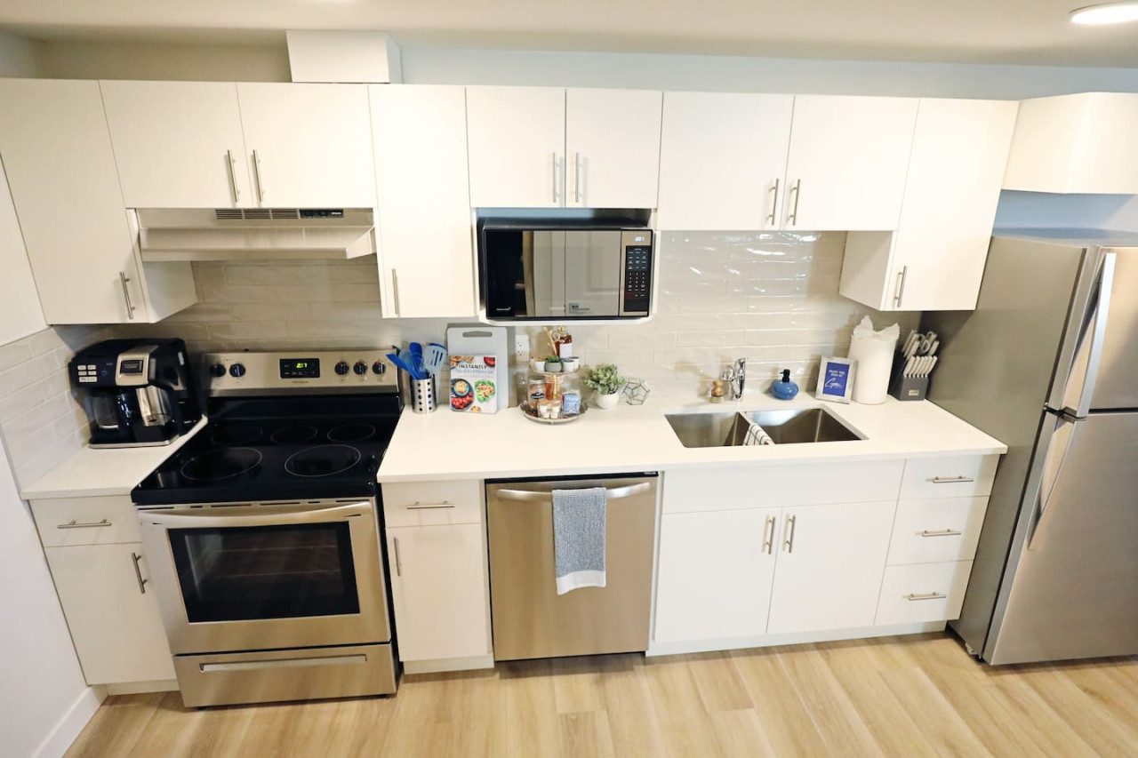 We provide a starter pack of essentials, including coffee, salt/pepper, sugar, soap, paper towels, toilet paper and other basic essentials to get you started. This covers most stays, but longer stays may require additional supplies, which will be the guest’s responsibility to restock.